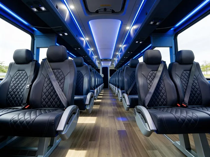 +Our fleet is equipped with modern features tailored to the needs of different Rochester travel patterns. Minibuses and sprinter vans offer high-back reclining seats, individual climate control, and USB power outlets—perfect for short corporate shuttles between the University of Rochester and downtown. Full-size charter buses for regional travel to Buffalo or NYC add essential amenities like onboard restrooms, high-speed WiFi, and overhead monitors with DVD players to keep large groups comfortable on the I-90. For nights out in the Neighborhood of the Arts, our party buses feature wraparound leather seating, premium sound systems, and customizable LED lighting. All full-sized coaches include massive undercarriage bays for sports gear or convention materials. If your group requires ADA-accessible features like wheelchair lifts, please specify your needs when calling 585-498-1270.